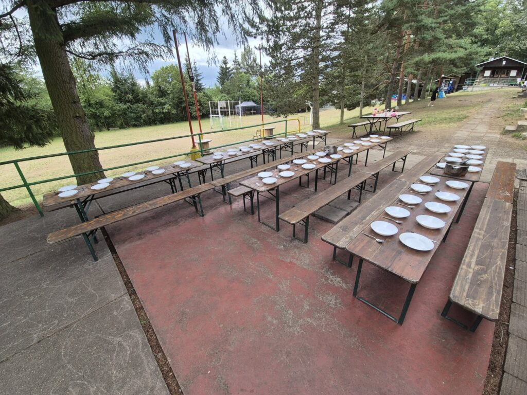 Kromě kvalitní stravy dbáme i na pravidelný pitný režim. Po celou dobu trvání tábora máme celodenně k dispozici várnice s čajem, šťávou či jiným nápojem, který připravuje naše kuchyně. Pro ty, kteří nemají rádi sladké nápoje, je tábořiště dobře zásobeno čistou pitnou vodou.