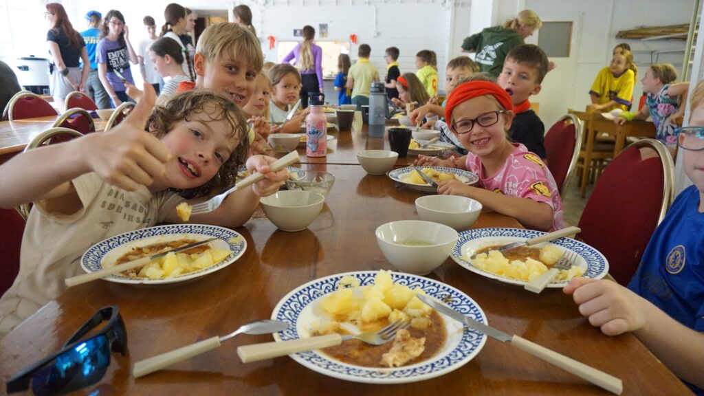 Každý den jsme společně vstupovali do jiné pohádkové říše. Děti se ráno budily do tematických scének, které připravovali vedoucí, a celý den je provázel upravený jídelníček ladící s konkrétní pohádkou. A samozřejmě nesměl chybět náš záludný šotek, který dětem každý den nachystal zapeklitý úkol k vyřešení.