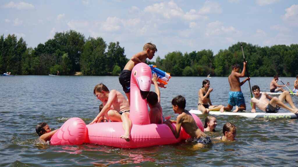 Celodenní výlet nás tentokrát zavedl k nedaleké pískovně. Mladší děti tam řádily ve vodě jako malé vydry, zatímco starší se na místo dopravily stylově – po řece, na kánojích.